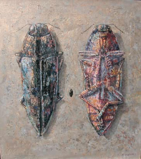 Nogensmenys, si els miren de prop, les obres d’en Xisco Fuentes, no els podrà faltar una alenada d’iconoclàstia, soterrada, davall el perfeccionisme formal del seus pinzells. No de bades el seu background de dibuixant a sou que fou un temps, no els deixa, ni falta que li fa, travessar per damunt o per davall, del seu enuig personal, de testimoni primer i intuïtiu de tanta destrucció, aquesta sí, evitable.