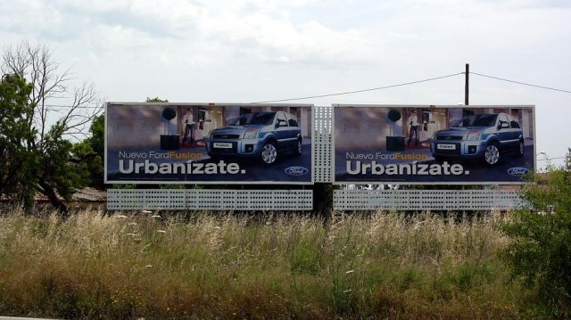 Continuant un poc més envant apareix una de les noves rotondes, amb un cossier de pedra enmig de tres fassers, símbol de la idea decorativa dels nous espais “rotondils” de la Mallorca comtemporània. Uns quilòmetres després hi trobam una de les fites més significatives de les carreteres espanyoles: “El toro d’Osborne”. Aquesta silueta gegantina d’un bou, va ser l’únic anunci indultat quan una norma obligà a retirar la publicitat de les voreres de les carreteres, ja que aquesta distreia els conductors. Quedà només la silueta, això sí, sense lletres publicitàries, el bou, les banyes i les seves “parts nobles”. Ha esdevengut símbol del patriotisme i l’espanyolisme més ranci, la qual cosa ha fet que aquest bou en concret, el de la nostra carretera, hagi estat “modificat” i “redecorat” constantment. Un dia aparegué pintat com un siurell, normalment hi sol haver escrits (“las corridas son una tortura, ni arte ni cultura”), les banyes doblegades per avall…En fí, es pot dir que hi ha activitat al seu entorn, en l’actualitat s’hi pot llegir: “Mallorca is not Spain”.