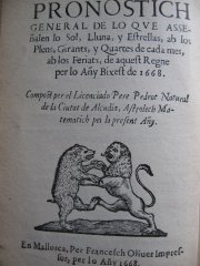 Ja en temps dels egipcis i a l’antiga Babilònia s’usava el pronosticar el temps –no sabem si amb el mateix encert que ho fan els moderns meteoròlegs- i, ja que hi eren, pronosticaven l’esdevenir dels sembrats i collites i -tant hi ha d’aquí a allà com d’allà aquí- el futur de les persones. De l’Astronomia a la Climatologia, tot passant per l’Astrologia i els Horòscops. Els mallorquins d’un temps foren molt afeccionats a aquesta literatura, de cordell, en deien. De totes les maneres, la relativa credibilitat que tenien els futuribles de les seves pàgines la feren derivar, en part, de cap a l’humor i la conya marinera. Ara tornen els parenòstics, arrebossats de calendari de sants, de calendari de feines a fora vila i, ja que hi són, tot un debessei d’articles que els converteixen en publicacions originals i atractives. I no es pensin, els porrerencs ens fan a saber que “ l’única cosa que cura el temps, és el formatge”; els santjoaners se fan propaganda : “Comprau aquesta plagueta / els que llegir sapigueu / vos assegur que riureu / perquè sa feina és molt néta” i els de “Sa Plaça”, ens avisen : “aquest mes d’abril hi haurà dues plagues, una de papallones del dia 15 a les 4 hores fins dia 17 a les 15 i una d’arnes del 17 a les 15 fins dia 18 a les 24 hores”. Volien més precissió ? Idò, ja ho sabeu. Com deia un Parenòstic de 1753, per endevinar el que passaria l’any 1754: “Fret no en faltarà / y foch per escalfar aurás d’emprar...la humitat no serà bona pel blat / en ser segat, batut i estotjat / estarás molt descansat”. Més o manco com ara: “No hi ha temps que no torn”.