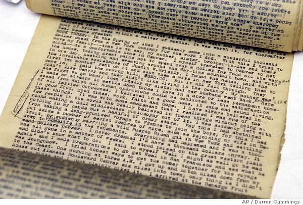(El manuscrit de "On the road" escrit en el "rollo" de teletip que proporcionà Lucien Carr)