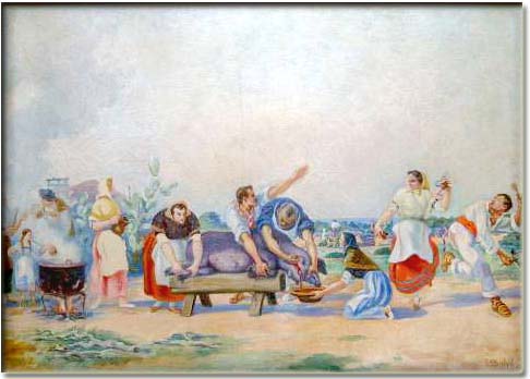 Ara els ha pegat per matar i obrar els porcs, en públic. Enmig de la plaça. Els ajuntaments ho organitzen, la gent ho mira, algú ho retrata. La pèrdua del sentit tradicional de les matances és un fet. La subcultura matancera ha arribat. Hi ha qui ens ha volgut fer creure que la cultura generada a l'entorn de la matança del porc a Mallorca i el seu producte estelar, «la sobrassada», és un dels puntals que defineixen el ser mallorquí. Així d'exagerat i així de cert. Les sobrassades, els botifarrons, la xulla, el saïm, els ossos i la litúrgia antecedent i subseqüent, en una paraula, tot el cicle que va des de l'engreixament del porc fins al seu consum, han alimentat la cuina, el cançoner, l'etnologia i l'antropologia. Per tant, una bona part del conscient i de l'inconscient de la mallorquinitat. Com quasi tot, el temps i els nous costums han imposat severes normatives modernes, des de les noves eines a les noves races, passant per la nova concepció del menjar saludable: a un malalt, avui en dia, el primer del que el priven és de menjar porc, gran generador de colesterol, «greix a la sang» com diu mestre en Toni «Randa». Tot això du camí d'abolir les matances tradicionals, i fer-les en públic, esmicola, encara més, aquest tros viu de la nostra cultura popular.